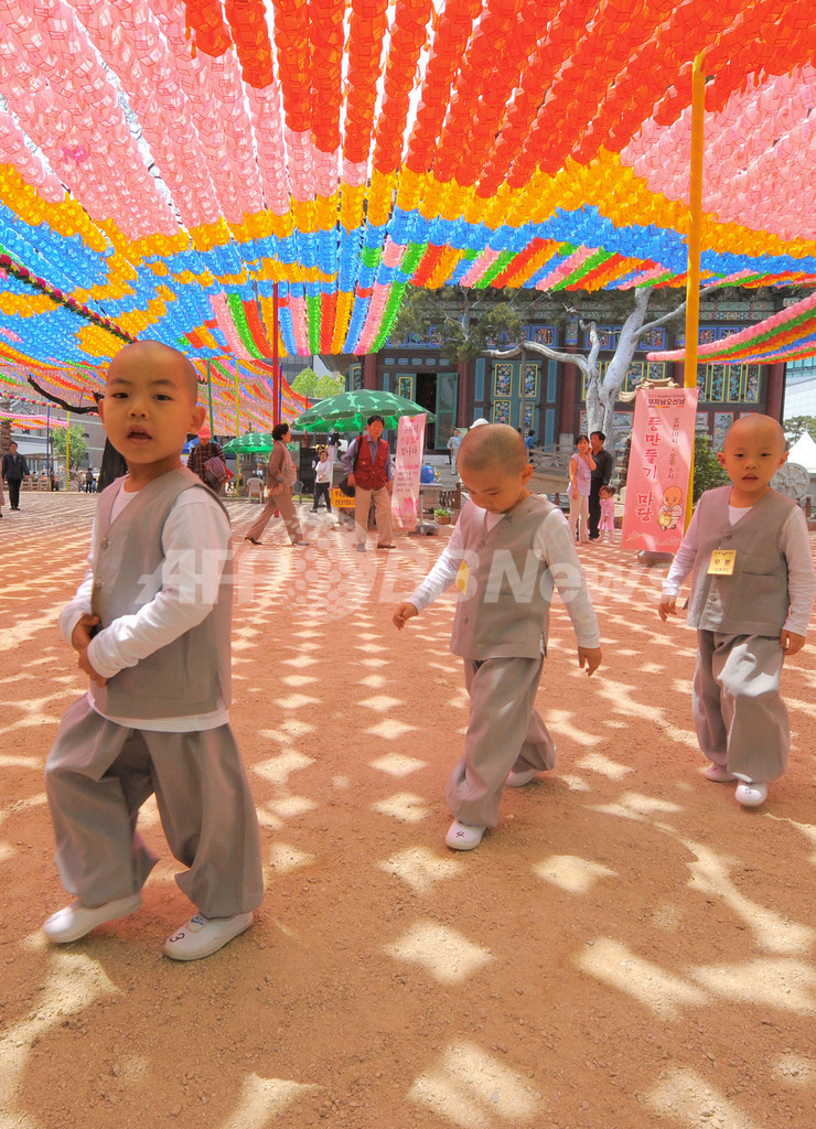 ニュース ライフ 釈迦の生涯を体験する子どもたち、韓国 2008年5月1日 20:44 発信地:ソウル/韓国 [ 韓国・北朝鮮 韓国 ] このニュースをシェア ‹ › ❮ 2/16 ❯ 韓国ソウル(Seoul)のChogye寺で行われた5月12日のブッダの誕生日を祝う行事で、輪を描いて歩く見習い僧の子どもたち(2008年5月1日)。(c)AFP/KIM JAE-HWAN 画像作成中 ! 【5月1日 AFP】韓国の首都ソウル(Seoul)の寺院で1日、12日に迎える仏教の開祖釈迦(しゃか、Buddha)の誕生日を祝う行事があった。8人の子どもたちが1か月間、見習い僧として寺の中で釈迦の生涯を体験する。(c)AFP/KIM JAE-HWAN ライフ 一覧へ> メディア・報道関係・法人の方向け 写真・動画 購入のお問合せ>