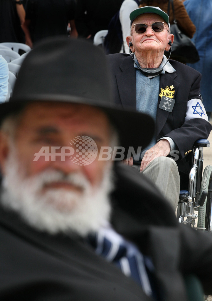 ニュース 戦争・紛争 ホロコースト記念日、ユダヤ人黙とうをささげる イスラエル 2008年5月2日 3:10 発信地:エルサレム/中東・アフリカ [ 中東・北アフリカ ] このニュースをシェア ‹ › ❮ 3/9 ❯ イスラエルのエルサレム(Jerusalem)にあるヤッドバシェム(Yad Vashem)ホロコースト(Holocaust)記念博物館で開かれたホロコースト記念日の式典で、ドイツ語でユダヤ人を意味する「Jude」と書かれたダビデの星(Star of David)を身につけた、ポーランド出身でホロコースト生存者のイスラエル人男性(2008年5月1日撮影)。(c)AFP/GALI TIBBON 画像作成中 ! 【5月2日 AFP】イスラエルのユダヤ人は1日、ナチス(Nazi)・ドイツのホロコースト(Holocaust、ユダヤ人大量虐殺)で殺害された約600万人のユダヤ人を追悼し、国中にサイレンが鳴り響く中、2分間の黙とうをささげた。 午前10時(日本時間午後4時)にサイレンの音が鳴ると、イスラエルの人口の約80%を占めるユダヤ人の大多数は職場や家では手を止め、運転中の人々は車を道路脇に止め、歩行者は立ち止まって祈りをささげた。(c)AFP 戦争・紛争 一覧へ> メディア・報道関係・法人の方向け 写真・動画 購入のお問合せ>