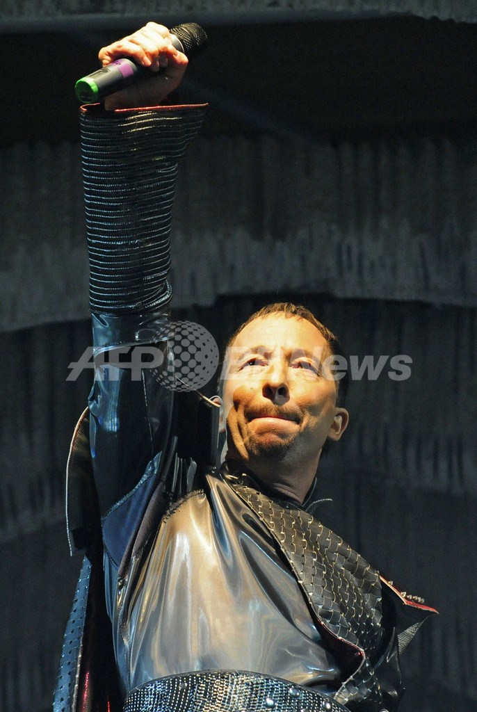 ドイツ西部のオーバーハウゼン(Oberhausen)で「Vampires Alive Tour」の皮切りコンサートを開催し、パフォーマンスを披露するスイス人歌手のDJボボ(DJ Bobo)(2008年4月30日撮影)。(c)AFP/DDP/CLEMENS BILAN