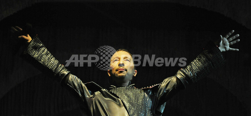 ドイツ西部のオーバーハウゼン(Oberhausen)で「Vampires Alive Tour」の皮切りコンサートを開催し、パフォーマンスを披露するスイス人歌手のDJボボ(DJ Bobo)(2008年4月30日撮影)。(c)AFP/DDP/CLEMENS BILAN