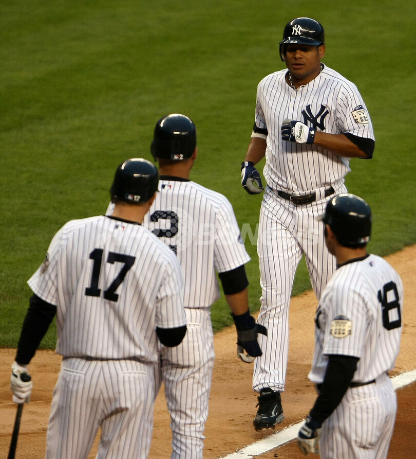 スポーツ 野球 タイガース 敵地でヤンキースに3連勝 2008年5月2日 13:56 発信地:ニューヨーク/米国 [ 北米 米国 ] このニュースをシェア ‹ › ❮ 6/9 ❯ デトロイト・タイガース戦の1回裏に先制の3点本塁打を放ったボビー・アブレイユ(%%Bobby Abreu%%、奥)をホームで迎えるニューヨーク・ヤンキースの(左から)シェリー・ダンカン(%%Shelley Duncan%%)、デレク・ジーター(%%Derek Jeter%%)、ジョニー・デーモン(%%Johnny Damon%%)。(2008年5月1日撮影)(c)AFP/Getty Images/Chris McGrath 画像作成中 ! 【5月2日 AFP】08MLB、ニューヨーク・ヤンキース(New York Yankees)vsデトロイト・タイガース(Detroit Tigers)。試合はタイガースが8-4で勝利し、敵地でヤンキースに3連勝を飾った。(c)AFP/Getty Images 野球 一覧へ> メディア・報道関係・法人の方向け 写真・動画 購入のお問合せ>