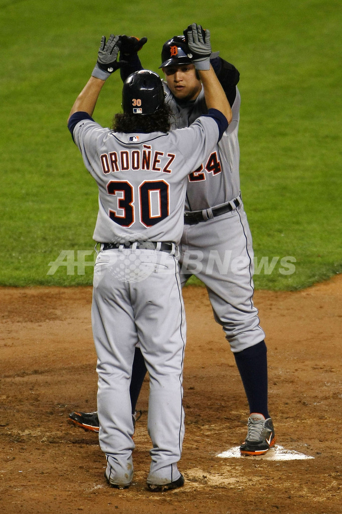スポーツ 野球 タイガース 敵地でヤンキースに3連勝 2008年5月2日 13:56 発信地:ニューヨーク/米国 [ 北米 米国 ] このニュースをシェア ‹ › ❮ 3/9 ❯ ニューヨーク・ヤンキース戦で7回表に第6号2ラン本塁打を放ち、マグリオ・オルドニエス(%%Magglio Ordonez%%、左)とハイタッチを交わすデトロイト・タイガースのミゲル・カブレラ(%%Miguel Cabrera%%)。(2008年5月1日撮影)(c)AFP/Getty Images/Chris McGrath 画像作成中 ! 【5月2日 AFP】08MLB、ニューヨーク・ヤンキース(New York Yankees)vsデトロイト・タイガース(Detroit Tigers)。試合はタイガースが8-4で勝利し、敵地でヤンキースに3連勝を飾った。(c)AFP/Getty Images 野球 一覧へ> メディア・報道関係・法人の方向け 写真・動画 購入のお問合せ>