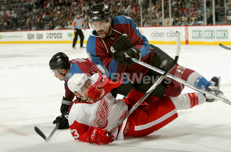 スポーツ ウインタースポーツ レッドウィングス アバランチに4連勝でカンファレンス決勝へ 2008年5月2日 14:35 発信地:デンバー/米国 [ 北米 米国 ] このニュースをシェア ‹ › ❮ 3/5 ❯ レッドウィングスの%%Darren Helm%%を倒すアバランチのベン・ギーテ(%%Ben Guite%%、右)。(2008年5月1日撮影)(c)AFP/Getty Images/Doug Pensinger 画像作成中 ! 【5月2日 AFP】07-08NHL、西カンファレンス・プレーオフ準決勝、コロラド・アバランチ(Colorado Avalanche)vsデトロイト・レッドウィングス(Detroit Red Wings)、第4戦。試合はレッドウィングスが8-2でアバランチを下し、4連勝で西カンファレンス決勝へ進出を決めた。(c)AFP/Getty Images ウインタースポーツ 一覧へ> メディア・報道関係・法人の方向け 写真・動画 購入のお問合せ>
