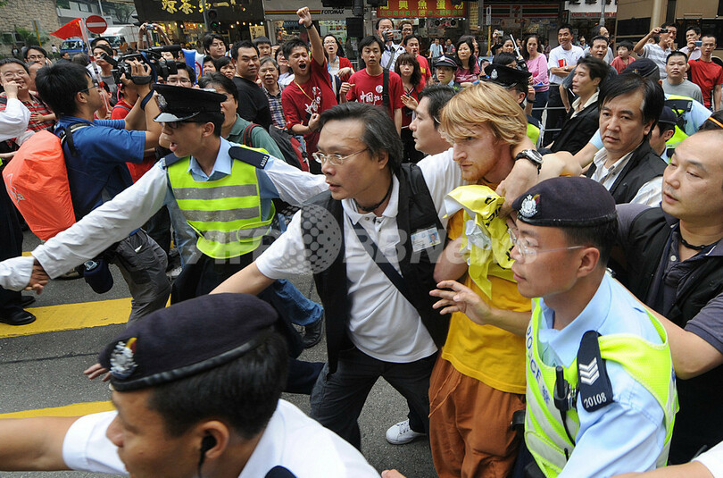 一方、1997年に香港が英国から中国に返還された際に確約された直接選挙の実施を要求する民主化活動家100人あまりと中国支持派の人びとがにらみ合い、一触即発の場面もみられた。