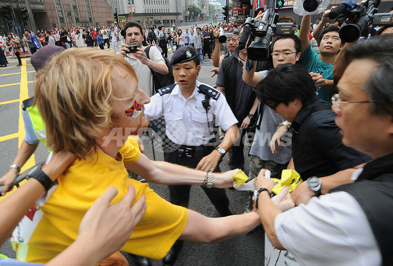 リレーコースの路上では、散発的ながらチベット支持派や民主運動家による抗議活動も行われ、警察に身柄を拘束される人びとも出た。警察によれば、拘束された活動家らは、その後、釈放されたという。