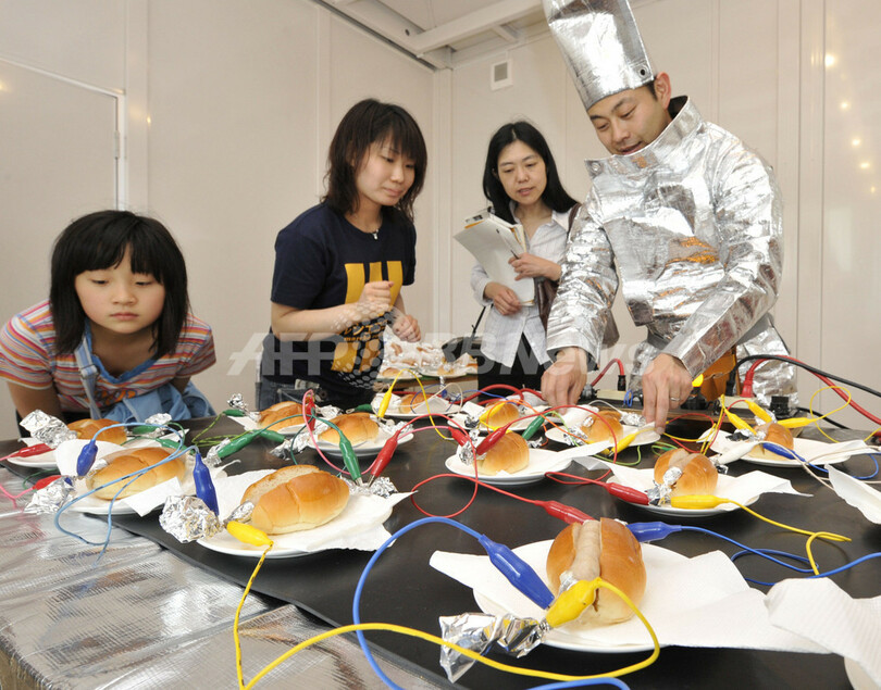 ニュース ライフ こぼれ話 おいしい芸術品、直流電流でホットドッグ 2008年5月4日 4:54 発信地:千葉 [ アジア・オセアニア 千葉 ] このニュースをシェア ‹ › ❮ 7/7 ❯ 千葉県柏市で、アートイベントに出展された直列接続で電流を流してソーセージを加熱するホットドッグの作品「電気ショッククッキング」(2008年5月3日撮影)。(c)AFP/Yoshikazu TSUNO 画像作成中 ! 【5月4日 AFP】(5月7日 一部更新)千葉県柏市で3日、アートイベントが開かれた。参加アーティストの1人は「電気ショッククッキング」と題し、手作りのソーセージを使ったホットドッグの作品を発表した。ソーセージに直列接続で電流を流し、直接加熱して料理する。同様にしてステーキやケーキも焼けるという。(c)AFP ライフ 一覧へ> メディア・報道関係・法人の方向け 写真・動画 購入のお問合せ>