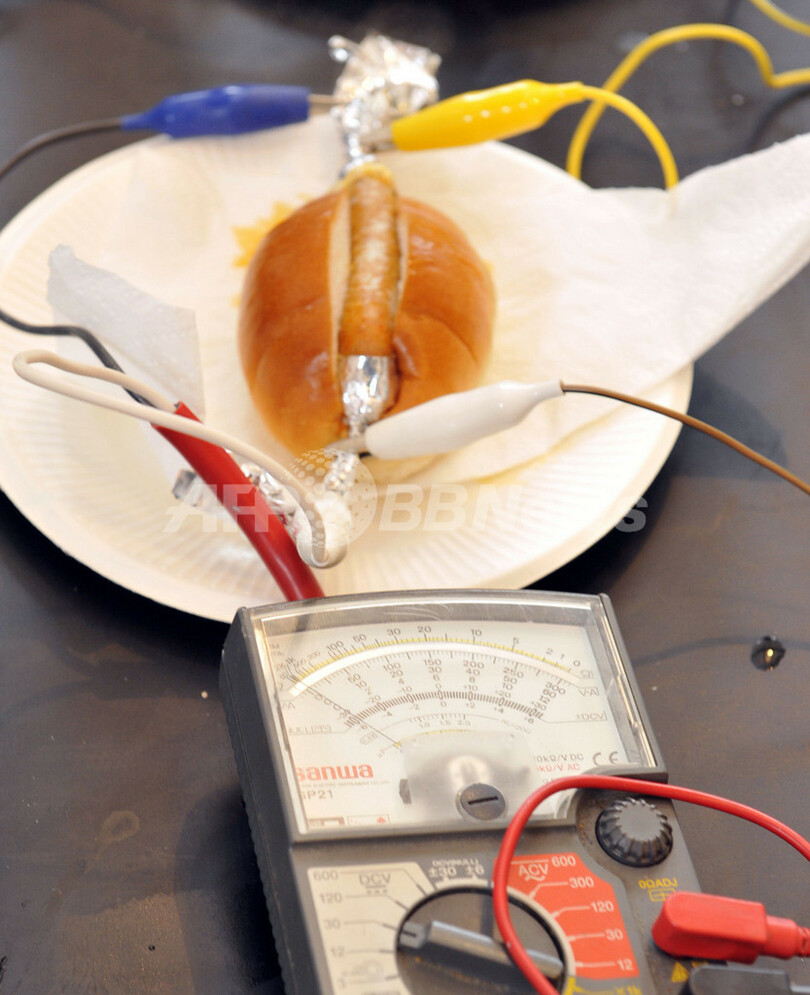 ニュース ライフ こぼれ話 おいしい芸術品、直流電流でホットドッグ 2008年5月4日 4:54 発信地:千葉 [ アジア・オセアニア 千葉 ] このニュースをシェア ‹ › ❮ 4/7 ❯ 千葉県柏市で、アートイベントに出展された直列接続で電流を流してソーセージを加熱するホットドッグの作品「電気ショッククッキング」(2008年5月3日撮影)。(c)AFP/Yoshikazu TSUNO 画像作成中 ! 【5月4日 AFP】(5月7日 一部更新)千葉県柏市で3日、アートイベントが開かれた。参加アーティストの1人は「電気ショッククッキング」と題し、手作りのソーセージを使ったホットドッグの作品を発表した。ソーセージに直列接続で電流を流し、直接加熱して料理する。同様にしてステーキやケーキも焼けるという。(c)AFP ライフ 一覧へ> メディア・報道関係・法人の方向け 写真・動画 購入のお問合せ>