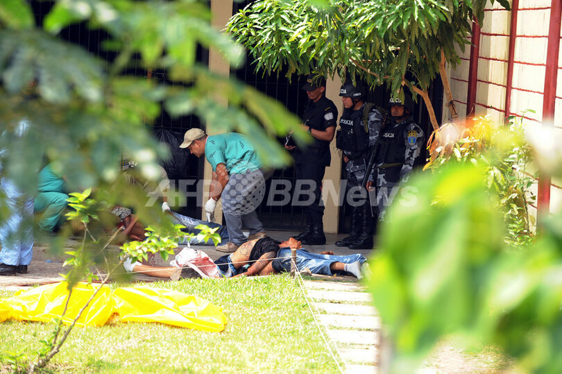 死亡した18人は北部サンペドロスラ(San Pedro Sula)刑務所から移送されたばかりの囚人57人の一部だった。サンペドロスラ刑務所では4月末、刑務所内の犯罪組織による暴力で囚人9人が死亡したばかり。(c)AFP