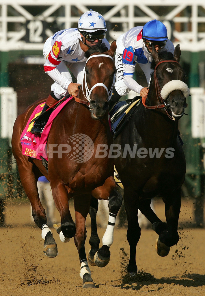 【5月4日 AFP】米国競馬のGⅠレース、第134回ケンタッキーダービー(134rd Kentucky Derby、3歳、ダート10ハロン)がチャーチルダウンズ競馬場(Churchill Downs)で開催され、ケント・デザーモ(Kent Desormeaux)騎手騎乗のビッグブラウン(Big Brown)が優勝を果たした。