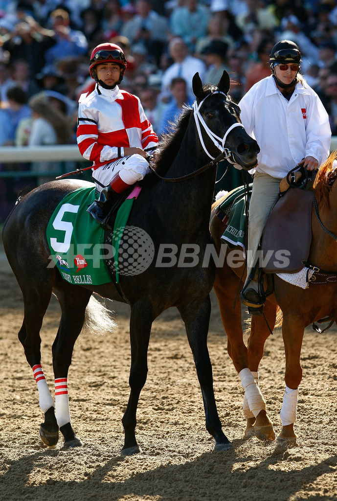 史上4頭目の牝馬によるケンタッキーダービー制覇を目指したエイトベルズは、レース中に両前脚を骨折してゴール直後に倒れ込んだため、獣医によって安楽死の措置がとられた。(c)AFP