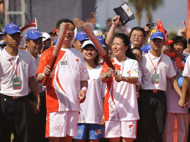 聖火リレーには俳優のジャッキー・チェン(Jackie Chan)や女優のチャン・ツィイー(Zhang Ziyi)も参加した。(c)AFP