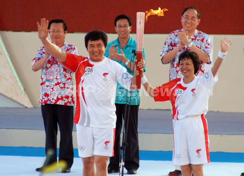 聖火リレーには俳優のジャッキー・チェン(Jackie Chan)や女優のチャン・ツィイー(Zhang Ziyi)も参加した。(c)AFP