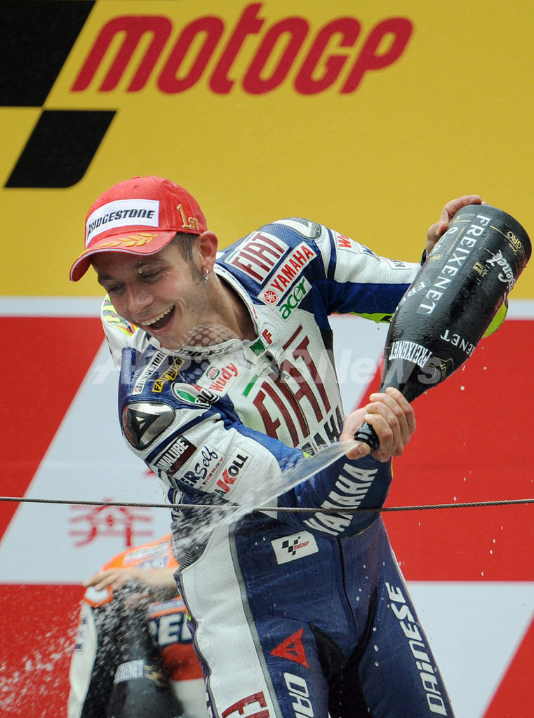 【5月4日 AFP】世界ロードレース選手権(WGP 2008)第4戦・中国GP・MotoGPクラス、決勝。2番グリッドからスタートしたフィアット・ヤマハ(Fiat Yamaha)のバレンティーノ・ロッシ(Valentino Rossi)は、44分08秒061を記録してトップでフィニッシュし、シーズン初優勝を飾った。