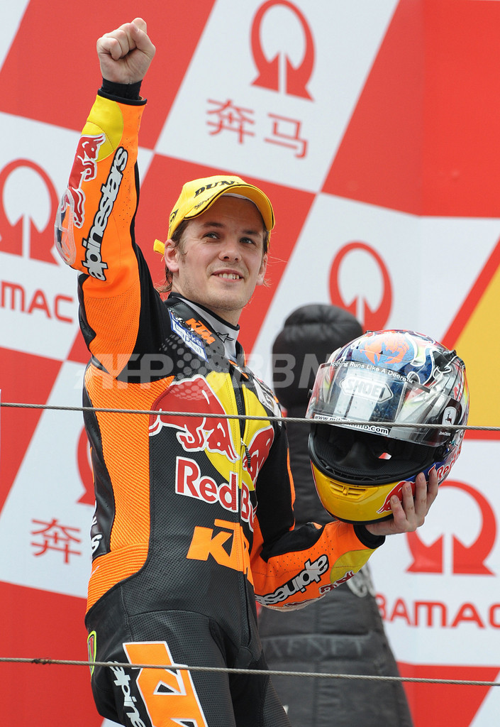【5月4日 AFP】世界ロードレース選手権(WGP 2008)第4戦・中国GP・250ccクラス、決勝。3番グリッドからスタートしたレッドブルKTM250(Red Bull KTM 250)のミカ・カリオ(Mika Kallio)は、48分12秒217を記録してトップでフィニッシュし、シーズン2勝目を挙げた。