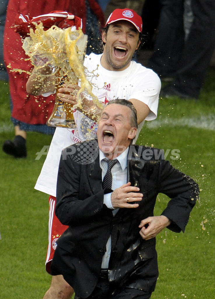 ボルフスブルクと引き分けて勝ち点を67としたバイエルンは、3試合を残し2位につけるヴェルダー・ブレーメン(Werder Bremen)との勝ち点差を10に広げ2年ぶりのリーグ優勝を果たした。2007-08シーズンにバイエルンはドイツ・リーグカップ(German League Cup)とドイツカップ2007-2008(German Cup 2007-2008)を既に制しており、リーグ優勝を加えて国内3冠を成し遂げた。(c)AFP/Ryland James