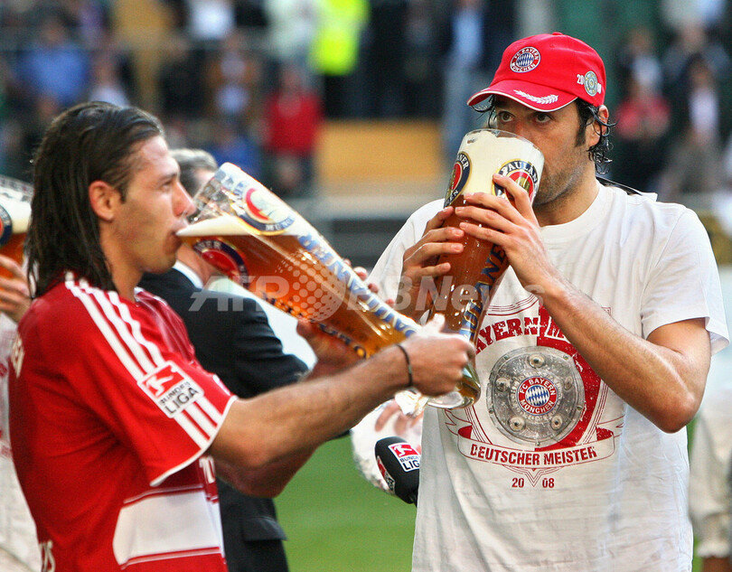 ボルフスブルクと引き分けて勝ち点を67としたバイエルンは、3試合を残し2位につけるヴェルダー・ブレーメン(Werder Bremen)との勝ち点差を10に広げ2年ぶりのリーグ優勝を果たした。2007-08シーズンにバイエルンはドイツ・リーグカップ(German League Cup)とドイツカップ2007-2008(German Cup 2007-2008)を既に制しており、リーグ優勝を加えて国内3冠を成し遂げた。(c)AFP/Ryland James