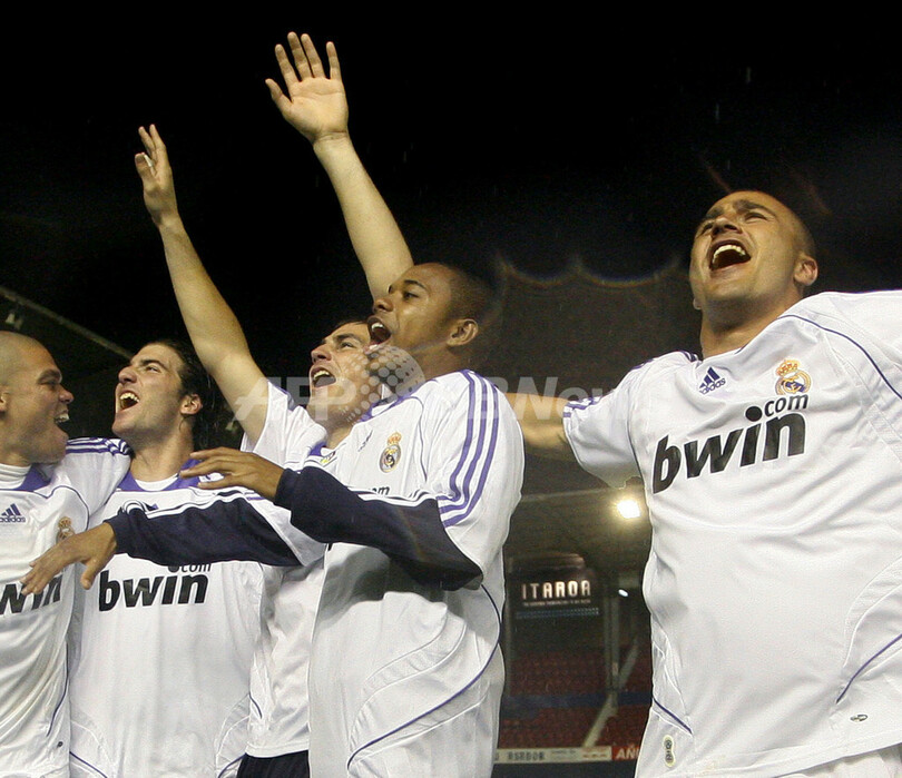 【5月5日 AFP】07-08スペイン・リーガエスパニョーラ1部・第35節、オサスナ(CA Osasuna)vsレアル・マドリード(Real Madrid)。試合はレアル・マドリードが2-1でオサスナを下し、通算31回目のリーグ優勝を果たした。