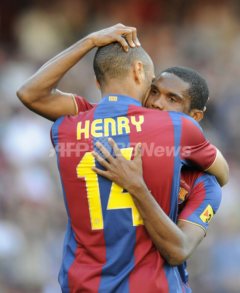 スポーツ サッカー バルセロナ ホームでバレンシアに快勝 2008年5月5日 10:38 発信地:バルセロナ/スペイン [ ヨーロッパ スペイン ] このニュースをシェア ‹ › ❮ 10/12 ❯ ゴールを決めサミュエル・エトー(%%Samuel Eto’o%%、右)から祝福を受けるFCバルセロナのティエリ・アンリ(%%Thierry Henry%%)。(2008年5月4日撮影)(c)AFP/LLUIS GENE 画像作成中 ! 【5月5日 AFP】07-08スペイン・リーガエスパニョーラ1部・第35節、FCバルセロナ(FC Barcelona)vsバレンシア(Valencia)。試合はバルセロナが6-0で快勝した。(c)AFP サッカー 一覧へ> メディア・報道関係・法人の方向け 写真・動画 購入のお問合せ>
