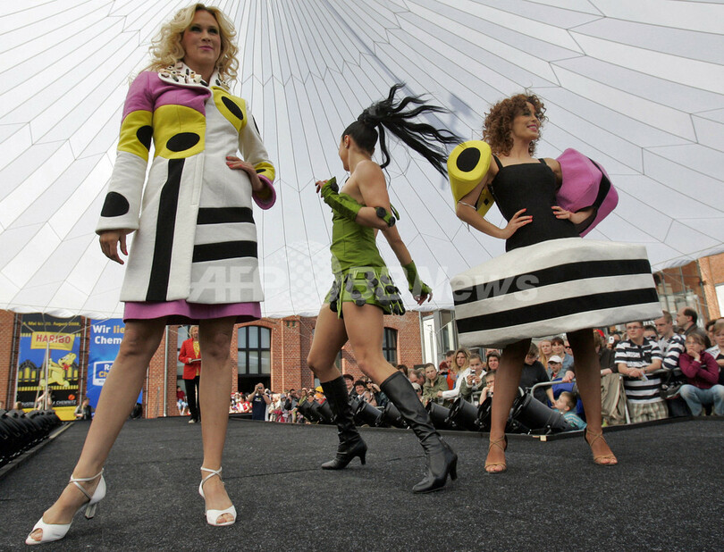 【5月6日 AFP】ドイツ東部のケムニッツ(Chemnitz)で4日、お菓子をイメージしたデザインの服のファッションショーが開かれた。このファッションショーは、グミキャンデーで知られる独製菓メーカー、ハリボー(Haribo)の歴史を紹介する展覧会の宣伝活動として開催された。ハリボーは、今や世界的に有名な「クマのグミ」を1922年に開発した会社。