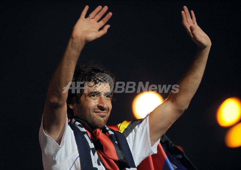 何人かのファンは欧州選手権2008(Euro 2008)に向けてラウルの代表復帰を後押しするためラウルの名前と共に「(スペイン)代表」というスローガンが書かれたシャツを着ていた。2007-08シーズンにリーグ戦で17ゴール(5月4日現在)を記録したラウルは、2006年9月以来スペイン代表に招集されていないが、同代表のルイス・アラゴネス(Luis Aragones)監督は現在102を数えるラウルの代表としての出場試合が増えるチャンスはないとしている。(c)AFP
