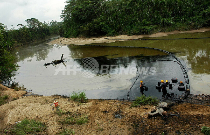 【5月5日 AFP】南米コロンビアのノルテデサンタンデル(Norte de Santander)州で4月29日、左翼ゲリラ「コロンビア革命軍(Revolutionary Armed Forces of Colombia、FARC)」によるものとみられる攻撃を受けたカノ・リモン(Cano Limon)とコベナス(Covenas)のパイプラインから原油がTibu川に流出し、川の汚染が懸念される。流出した4000バレルもの原油は、現在も18キロにわたって川を汚染している。(c)AFP