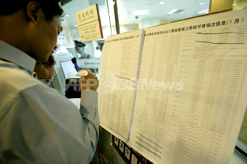【5月5日 AFP】北京五輪の最後の国内向けチケットの販売が開始した中国で5日、購入を希望する多くの中国人が中国銀行(Bank of China)店舗とインターネットの販売サイトに殺到し、オンライン販売では長時間にわたって遅延が発生した。一方のチケット販売センター側は、重大な問題は起こらなかったと発表した。