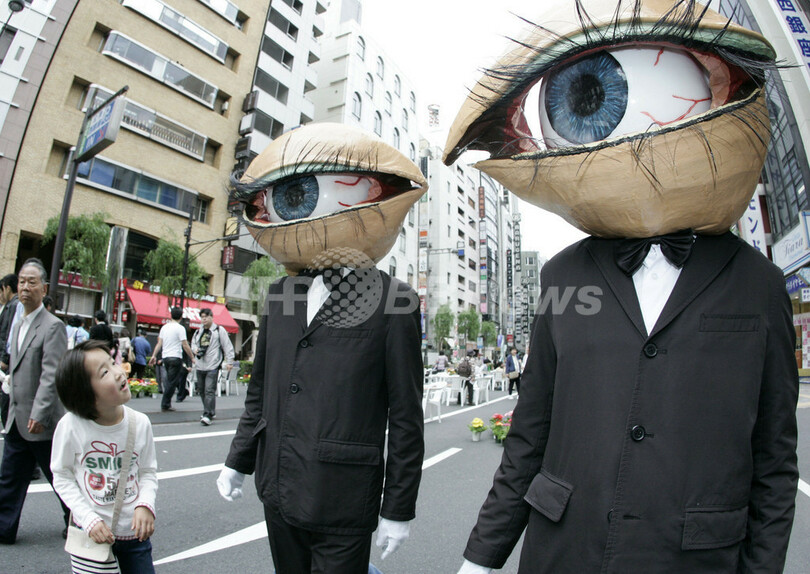 ニュース ライフ こぼれ話 GWでにぎわう銀座、大きな目玉が登場 2008年5月5日 20:01 発信地:東京 [ アジア・オセアニア 東京 ] このニュースをシェア ‹ › ❮ 10/10 ❯ 都内・銀座の大通りを歩く、巨大な目玉のかぶり物をまとったストリートパフォーマー「Medaman-Medaman」のメンバーら(2008年5月5日撮影)。(c)AFP/Yoshikazu TSUNO 画像作成中 ! 【5月5日 AFP】ゴールデンウィークでにぎわう都内の銀座で5日、大道芸やパレードなどのイベントがあり、巨大な目玉のかぶり物をまとった「Medaman-Medaman」などのストリートパフォーマーらがショッピングに訪れた人々を楽しませた。(c)AFP ライフ 一覧へ> メディア・報道関係・法人の方向け 写真・動画 購入のお問合せ>
