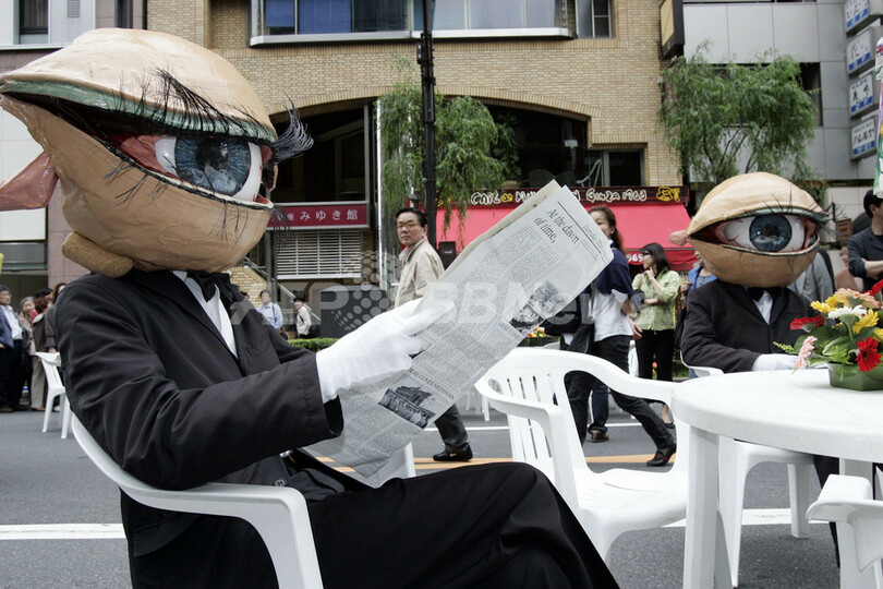 ニュース ライフ こぼれ話 GWでにぎわう銀座、大きな目玉が登場 2008年5月5日 20:01 発信地:東京 [ アジア・オセアニア 東京 ] このニュースをシェア ‹ › ❮ 4/10 ❯ 都内・銀座の大通りでパフォーマンスを披露する、巨大な目玉のかぶり物をまとったストリートパフォーマー「Medaman-Medaman」のメンバーら(2008年5月5日撮影)。(c)AFP/Yoshikazu TSUNO 画像作成中 ! 【5月5日 AFP】ゴールデンウィークでにぎわう都内の銀座で5日、大道芸やパレードなどのイベントがあり、巨大な目玉のかぶり物をまとった「Medaman-Medaman」などのストリートパフォーマーらがショッピングに訪れた人々を楽しませた。(c)AFP ライフ 一覧へ> メディア・報道関係・法人の方向け 写真・動画 購入のお問合せ>
