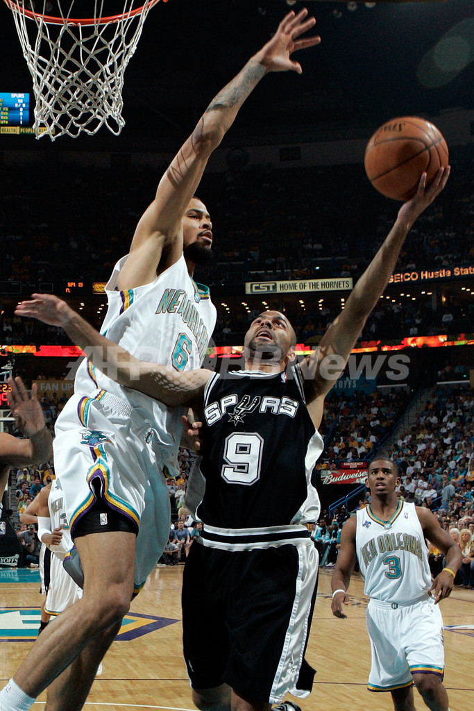 【5月7日 AFP】07-08NBA、西カンファレンス・プレーオフ準決勝、ニューオーリンズ・ホーネッツ(New Orleans Hornets)vsサンアントニオ・スパーズ(San Antonio Spurs)第2戦。試合はホーネッツが102-84で勝利を収めた。