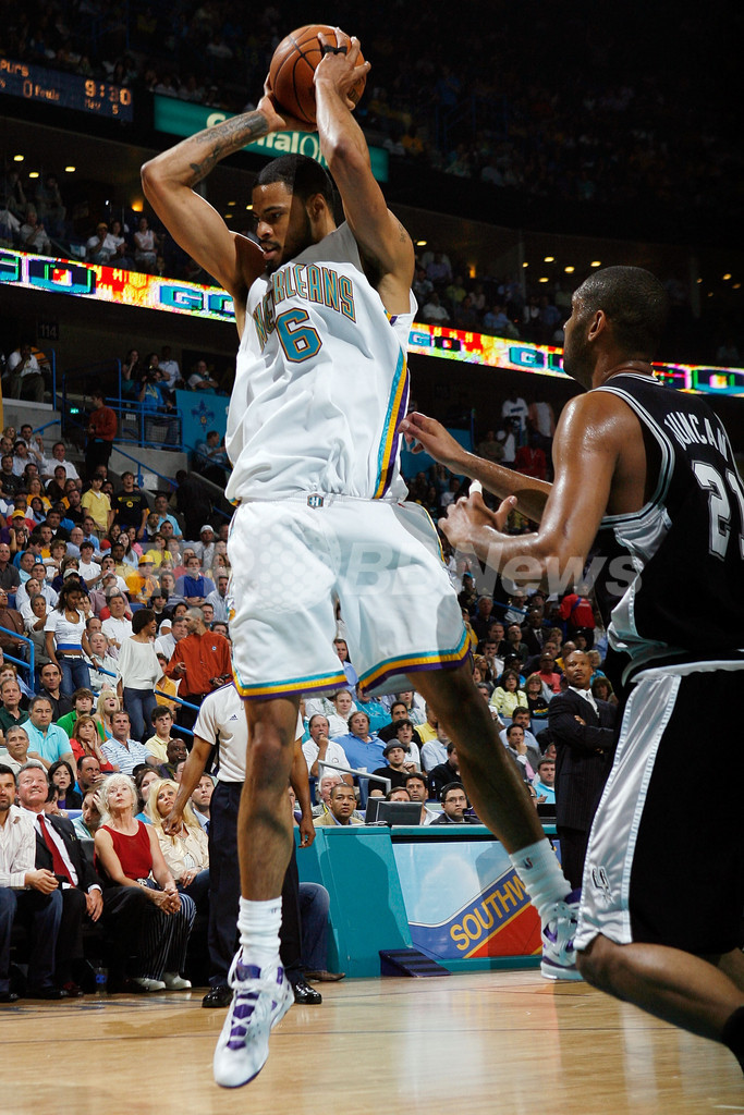 【5月7日 AFP】07-08NBA、西カンファレンス・プレーオフ準決勝、ニューオーリンズ・ホーネッツ(New Orleans Hornets)vsサンアントニオ・スパーズ(San Antonio Spurs)第2戦。試合はホーネッツが102-84で勝利を収めた。