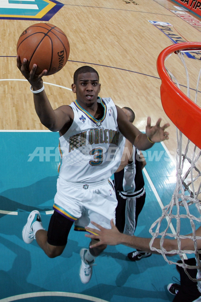 クリス・ポール(Chris Paul)が共に試合最多となる30得点12アシストでダブルダブルを記録したホーネッツは、ペジャ・ストヤコビッチ(Peja Stojakovic)が7本中5本の3ポイントシュートを成功させるなど25得点を記録し、さらにデビッド・ウエスト(David West)が10得点を記録して、06-07シーズンのNBAファイナルの覇者スパーズを相手に2連勝を飾った。(c)AFP