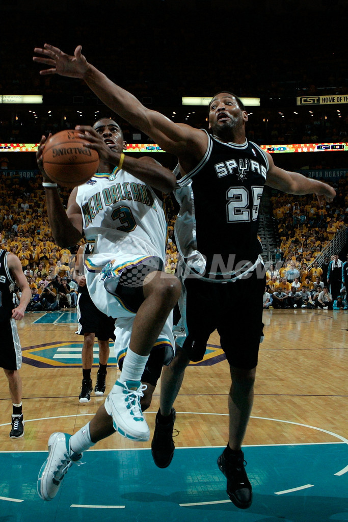 【5月7日 AFP】07-08NBA、西カンファレンス・プレーオフ準決勝、ニューオーリンズ・ホーネッツ(New Orleans Hornets)vsサンアントニオ・スパーズ(San Antonio Spurs)第2戦。試合はホーネッツが102-84で勝利を収めた。