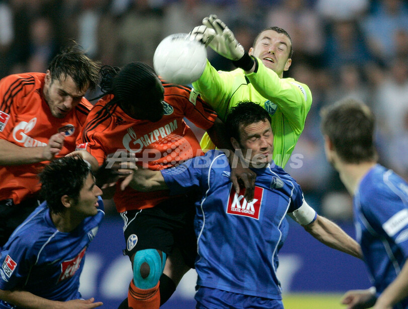 【5月7日 AFP】07-08ドイツ・ブンデスリーガ1部・第32節、ボーフム(Bochum)vsシャルケ04(Schalke04)。試合は前半34分にジェラルド・アサモア(Gerald Asamoah)のヘディングシュートで先制したシャルケが3-0で快勝した。