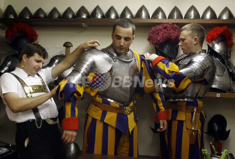 ニュース ライフ ローマ法王を警護するスイス衛兵隊のパレード 2008年5月7日 14:25 発信地:バチカン市国 [ ヨーロッパ バチカン市国 ] このニュースをシェア ‹ › ❮ 6/15 ❯ バチカン(Vatican)で行われた「ローマ略奪」を記念する式典の準備をする、スイス衛兵隊(2008年5月6日撮影)。(c)AFP/Alessandra Tarantino 画像作成中 ! 【5月7日 AFP】バチカン(Vatican)で6日、ローマ法王を護衛するスイス衛兵隊の式典が催された。この式典は1527年の「ローマ略奪」の際、147人のスイス衛兵が法王クレメンス7世(Clement VII)を守って殉職したことを記念して、毎年5月6日に行われている。(c)AFP ライフ 一覧へ> メディア・報道関係・法人の方向け 写真・動画 購入のお問合せ>