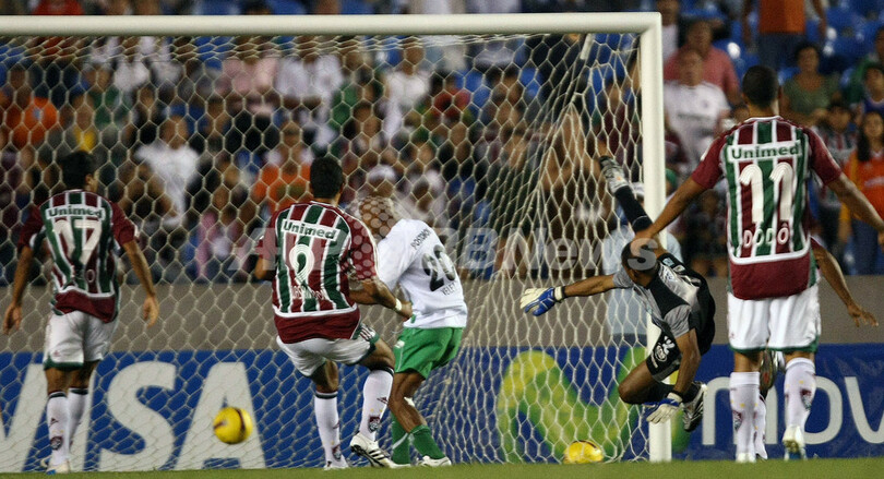 【5月7日 AFP】サッカー、リベルタドーレス杯2008(Copa Libertadores de America 2008)決勝トーナメント1回戦、フルミネンセ(Fluminense、ブラジル)vsアトレティコ・ナシオナル(Atletico Nacional、コロンビア)第2戦。試合はフルミネンセが1-0でアトレティコ・ナシオナルを下し、2戦合計スコアを3-1としたフルミネンセが準々決勝へ進出を決めた。(c)AFP