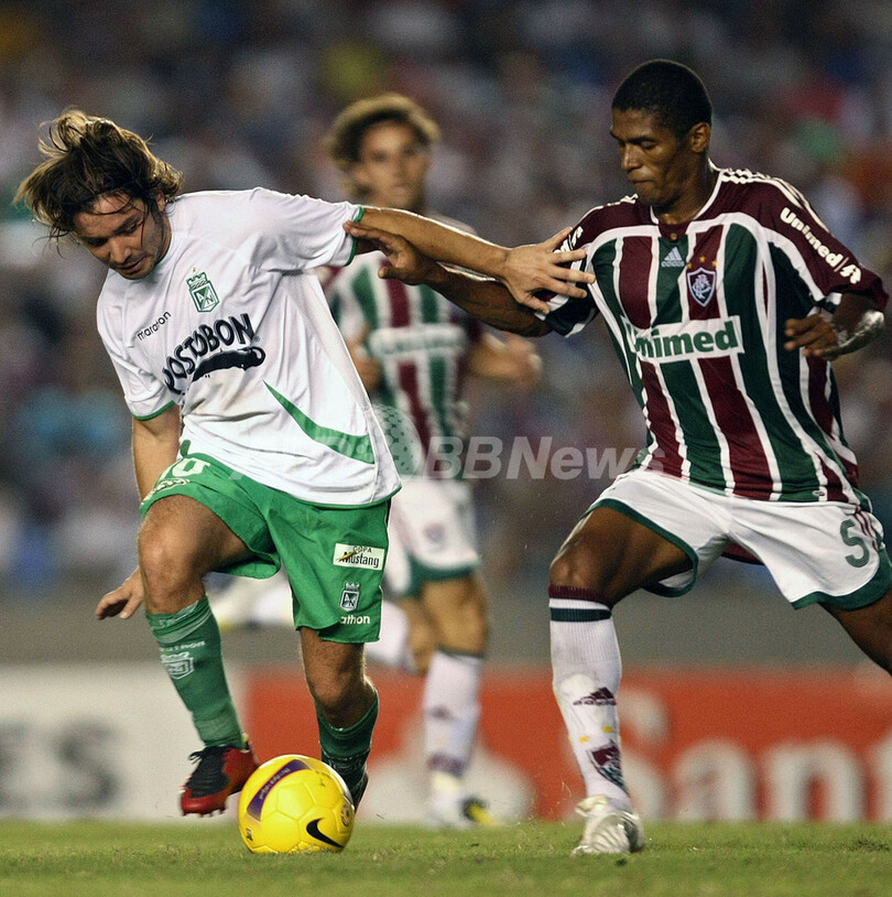 【5月7日 AFP】サッカー、リベルタドーレス杯2008(Copa Libertadores de America 2008)決勝トーナメント1回戦、フルミネンセ(Fluminense、ブラジル)vsアトレティコ・ナシオナル(Atletico Nacional、コロンビア)第2戦。試合はフルミネンセが1-0でアトレティコ・ナシオナルを下し、2戦合計スコアを3-1としたフルミネンセが準々決勝へ進出を決めた。(c)AFP