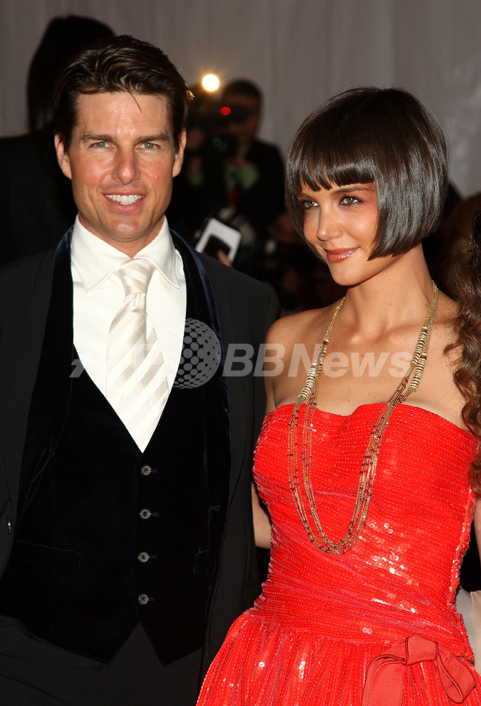 これに先駆け5日、ガラパーティーが開かれ、女優のケイティ・ホームズ(Katie Holmes)と俳優のトム・クルーズ(Tom Cruise)夫妻が出席した。ケイティの赤いドレスとトムのスーツはジョルジオ・アルマーニ(Giorgio Armani)のもの。展覧会のテーマ“スーパーヒーロ”にあわせ、足下には鮮やかなブルーのシューズを合わせた。ジュエリーはブシュロン(Boucheron)。(c)MODE PRESS