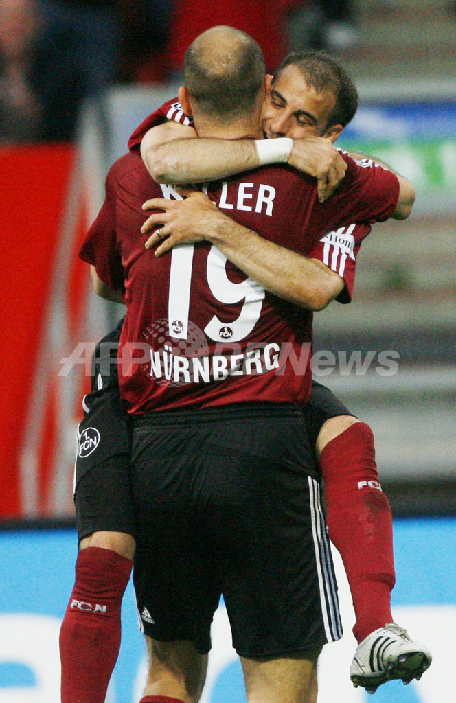 スポーツ サッカー ニュルンベルク デュイスブルクに勝利し残留に望み繋ぐ 2008年5月8日 8:02 発信地:ニュルンベルク/ドイツ [ ヨーロッパ ドイツ ] このニュースをシェア ‹ › ❮ 2/5 ❯ 前半32分にチーム2得点目を記録しチームメイトのヤン・コラー(%%Jan Koller%%)と喜びを分かち合うニュルンベルクのオラシオ・ピノラ(%%Horacio Javier Pinola%%、奥)。(2008年5月7日撮影)(c)AFP/DDP/TIMM SCHAMBERGER 画像作成中 ! 【5月8日 AFP】07-08ドイツ・ブンデスリーガ1部・第32節、ニュルンベルク(Nuremberg)vsデュイスブルク(Duisburg)。試合はニュルンベルクが2-0でデュイスブルクを下し、ニュルンベルクは勝ち点を31に伸ばし、デュイスブルクを抜いて16位に浮上した。(c)AFP サッカー 一覧へ> メディア・報道関係・法人の方向け 写真・動画 購入のお問合せ>
