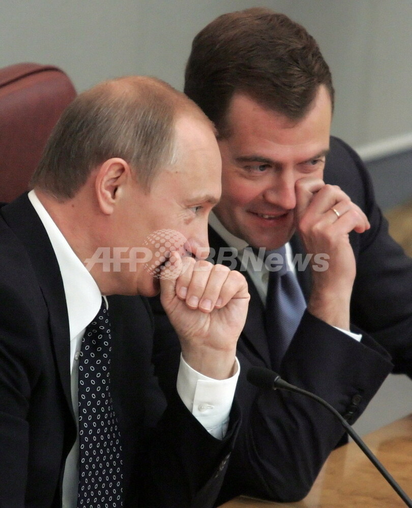 【5月8日 AFP】ロシア下院は8日、前日に就任したドミトリー・メドベージェフ(Dmitry Medvedev)新大統領(42)によるウラジーミル・プーチン(Vladimir Putin)前大統領(55)の首相指名を、賛成392、反対56の賛成多数で承認した。これによりプーチン氏は大統領退任後も首相としてロシア政治の中枢に居座ることとなり、ロシアは前例のない「双頭体制」の時代を迎えた。