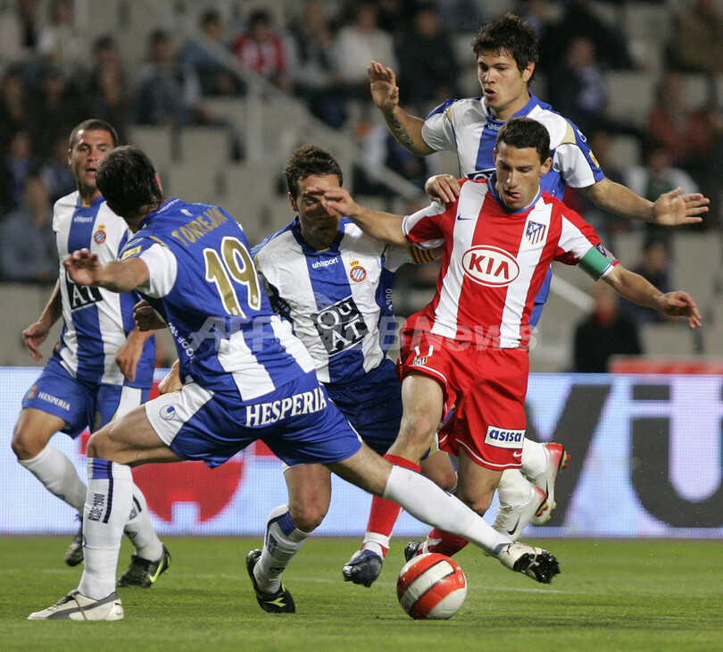 【5月9日 AFP】サッカー、07-08スペイン・リーガエスパニョーラ1部・第36節、RCDエスパニョール(RCD Espanyol)vsアトレティコ・マドリード(Atletico de Madrid)。試合はアトレティコ・マドリードが2-0でエスパニョールを下し、2連勝を飾った。
