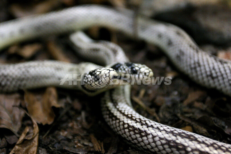 ニュース ライフ こぼれ話 2つの頭のヘビ、名前は「トムとジェリー」 2008年5月9日 11:21 発信地:オッフェンブルク/ドイツ [ ヨーロッパ ドイツ ] このニュースをシェア ‹ › ❮ 2/3 ❯ ドイツ西部のオッフェンブルク(Offenburg)で開かれている爬虫(はちゅう)類展に登場した、2つの頭を持つヘビ(2008年5月8日撮影)。(c)AFP/JOHANNA LEGUERRE 画像作成中 ! 【5月9日 AFP】ドイツ西部のオッフェンブルク(Offenburg)で開かれている爬虫(はちゅう)類展に、2つの頭を持つヘビが展示されている。名前は「トムとジェリー」。(c)AFP ライフ 一覧へ> メディア・報道関係・法人の方向け 写真・動画 購入のお問合せ>