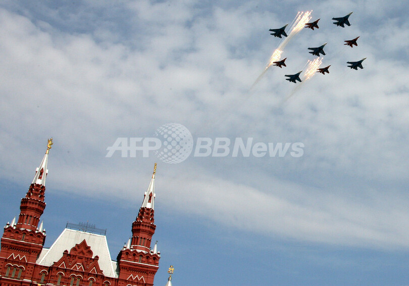 ニュース 政治・経済 ロシア赤の広場で戦勝記念日のパレード 2008年5月9日 23:26 発信地:モスクワ/ロシア [ ロシア・CIS ロシア ] このニュースをシェア ‹ › ❮ 10/30 ❯ ロシアの首都モスクワ(Moscow)の「赤の広場(Red Square)」で行われた戦勝記念日(Victory Day)のパレードで、上空を飛行するMiG-29戦闘機とSu-27戦闘機(2008年5月9日撮影)。(c)AFP/YURI KADOBNOV 画像作成中 ! 【5月9日 AFP】(写真追加)ロシアの首都モスクワ(Moscow)にある赤の広場(Red Square)で9日、戦勝記念日(Victory Day)のパレードが行われた。旧ソ連時代以降初めて、核ミサイルや戦車のほか、TU160長距離爆撃機と戦闘機も空からパレードに参加した。(c)AFP 政治・経済 一覧へ> メディア・報道関係・法人の方向け 写真・動画 購入のお問合せ>