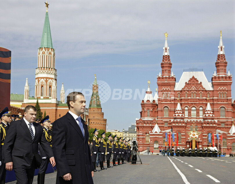 ニュース 政治・経済 ロシア赤の広場で戦勝記念日のパレード 2008年5月9日 23:26 発信地:モスクワ/ロシア [ ロシア・CIS ロシア ] このニュースをシェア ‹ › ❮ 2/30 ❯ ロシアの首都モスクワ(Moscow)の「赤の広場(Red Square)」で行われた戦勝記念日(Victory Day)のパレードで、兵士らを激励するドミトリー・メドベージェフ(Dmitry Medvedev)大統領 (左から2人目、2008年5月9日撮影)。(c)AFP/RIA NOVOSTI/DMITRY ASTAKHOV 画像作成中 ! 【5月9日 AFP】(写真追加)ロシアの首都モスクワ(Moscow)にある赤の広場(Red Square)で9日、戦勝記念日(Victory Day)のパレードが行われた。旧ソ連時代以降初めて、核ミサイルや戦車のほか、TU160長距離爆撃機と戦闘機も空からパレードに参加した。(c)AFP 政治・経済 一覧へ> メディア・報道関係・法人の方向け 写真・動画 購入のお問合せ>
