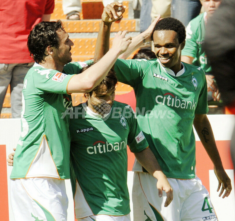 スポーツ サッカー ブレーメン 6得点を挙げハノーバーに快勝 2008年5月11日 8:20 発信地:ブレーメン/ドイツ [ ヨーロッパ ドイツ ] このニュースをシェア ‹ › ❮ 1/6 ❯ 前半27分にチームの2得点目を決めてウーゴ・アルメイダ(%%Hugo Almeida%%、左)とジエゴ・リバス(%%Diego Ribas%%、中央)から祝福されるブレーメンのナウド(%%Naldo%%)。(2008年5月10日撮影)(c)AFP/DDP/DAVID HECKER 画像作成中 ! 【5月11日 AFP】07-08ドイツ・ブンデスリーガ1部・第33節、ヴェルダー・ブレーメン(Werder Bremen)vsハノーバー(Hannover)。試合はブレーメンが6-1で快勝し2位の座を守った。(c)AFP サッカー 一覧へ> メディア・報道関係・法人の方向け 写真・動画 購入のお問合せ>