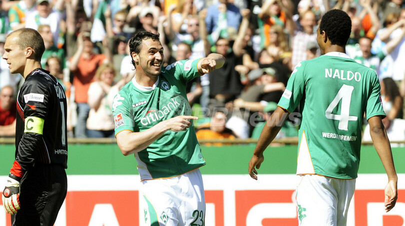 スポーツ サッカー ブレーメン 6得点を挙げハノーバーに快勝 2008年5月11日 8:20 発信地:ブレーメン/ドイツ [ ヨーロッパ ドイツ ] このニュースをシェア ‹ › ❮ 6/6 ❯ 前半14分に先制点を決めてナウド(%%Naldo%%、右)と喜びを分かち合うブレーメンのウーゴ・アルメイダ(%%Hugo Almeida%%)。(2008年5月10日撮影)(c)AFP/DDP/DAVID HECKER 画像作成中 ! 【5月11日 AFP】07-08ドイツ・ブンデスリーガ1部・第33節、ヴェルダー・ブレーメン(Werder Bremen)vsハノーバー(Hannover)。試合はブレーメンが6-1で快勝し2位の座を守った。(c)AFP サッカー 一覧へ> メディア・報道関係・法人の方向け 写真・動画 購入のお問合せ>