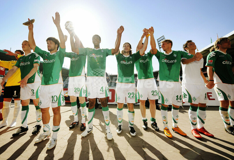 スポーツ サッカー ブレーメン 6得点を挙げハノーバーに快勝 2008年5月11日 8:20 発信地:ブレーメン/ドイツ [ ヨーロッパ ドイツ ] このニュースをシェア ‹ › ❮ 3/6 ❯ ホームでのシーズン終戦を白星で飾りサポーターと喜びを分かち合うブレーメンの選手。(2008年5月10日撮影)(c)AFP/DDP/DAVID HECKER 画像作成中 ! 【5月11日 AFP】07-08ドイツ・ブンデスリーガ1部・第33節、ヴェルダー・ブレーメン(Werder Bremen)vsハノーバー(Hannover)。試合はブレーメンが6-1で快勝し2位の座を守った。(c)AFP サッカー 一覧へ> メディア・報道関係・法人の方向け 写真・動画 購入のお問合せ>