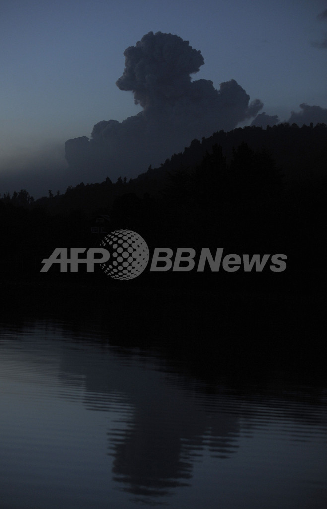 数十キロ離れた場所でも風で運ばれた火山灰で空はかすみ、同火山から約70キロのフタレウフェ(Futaleufu)には火山灰が厚く降り積もっている。(c)AFP