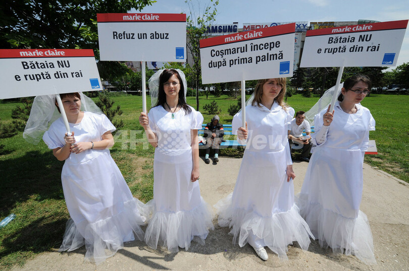 【5月12日 AFP】ルーマニアの首都ブカレスト(Bucharest)で地元の女性たちが8日、花嫁衣装を着て家庭内暴力に対する抗議活動を行った。