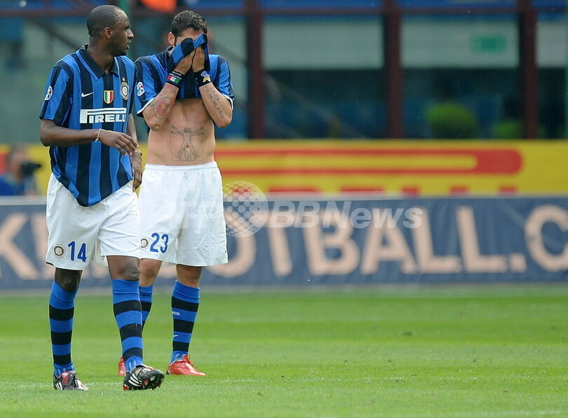 【5月12日 AFP】(記事更新、写真追加)サッカー、07-08イタリア・セリエA・第37節、インテル(Inter Milan)vsシエナ(AC Siena)。試合は2-2に引き分けに終わり、インテルは本拠地スタディオ・ジュゼッペ・メアッツァ(Stadio Giuseppe Meazza)で優勝を決めることはできなかった。