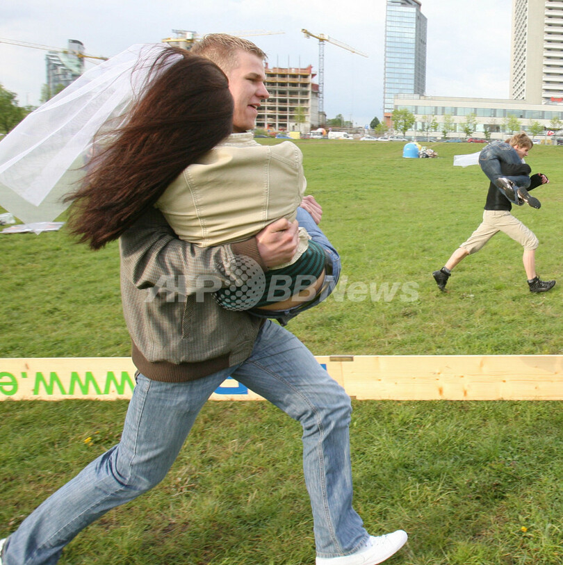ニュース ライフ カップルで参戦、リトアニアでも「奥様運び大会」開催 2008年5月14日 14:22 発信地:ビリニュス/リトアニア [ ヨーロッパ リトアニア ] このニュースをシェア ‹ › ❮ 7/7 ❯ リトアニアの首都ビリニュス(Vilnius)で行われた「奥様運び大会」に参加するカップル(2008年5月10日撮影)。(c)AFP/PETRAS MALUKAS 画像作成中 ! 【5月13日 AFP】リトアニアの首都ビリニュス(Vilnius)で10日、同国で初めての「奥様運び大会」が行われ、多くのカップルが参戦した。(c)AFP ライフ 一覧へ> メディア・報道関係・法人の方向け 写真・動画 購入のお問合せ>